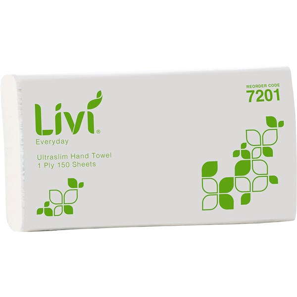 LIVI BASICS ULTRASLIM HAND TOWEL 1-PLY 150 SHEET 230 X 240MM CARTON 16