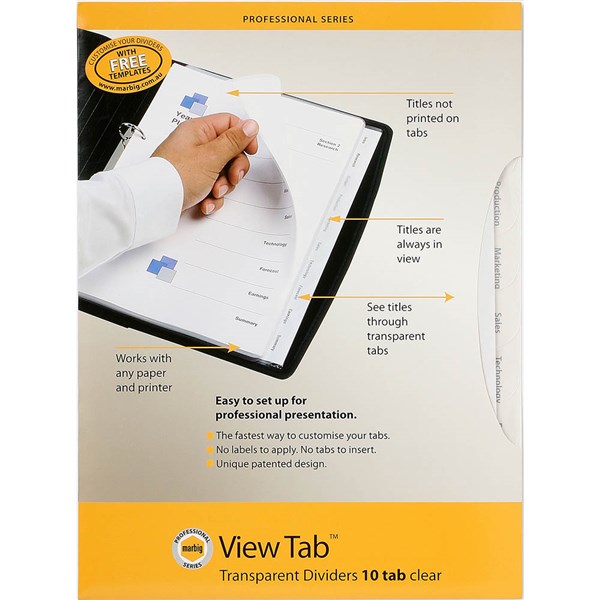 MARBIG PROFESSIONAL SERIES VIEW-TAB DIVIDER PP 10-TAB A4 CLEAR