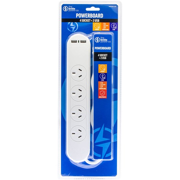 powerboard comes with four power outlets and dual USB ports