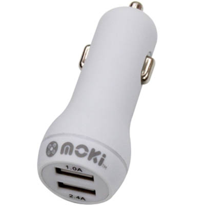 MOKI USB CAR CHARGER DUAL WHITE