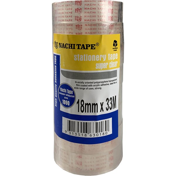 NACHI 630 STATIONERY TAPE 18MM X 33M TRANSPARENT PACK 8