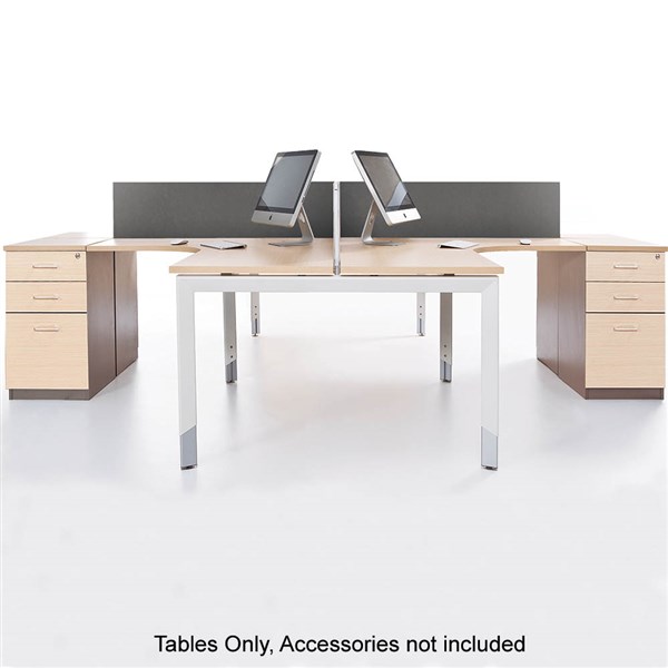 OBLIQUE HEIGHT ADJUSTABLE 4 PERSON CORNER WORKSTATION FIXED PEDESTAL 3000/3000 X 600/500 X 720MM SNOW MAPLE