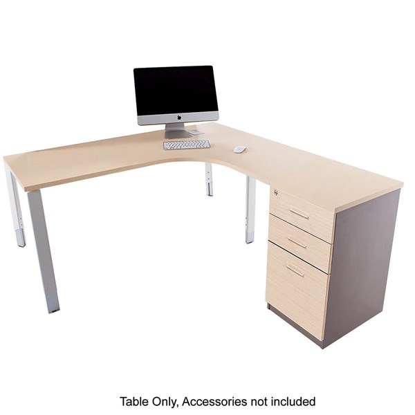 OBLIQUE HEIGHT ADJUSTABLE CORNER WORKSTATION RHS FIXED PEDESTAL 1500/1500 X 600/500 X 720MM SNOW MAPLE
