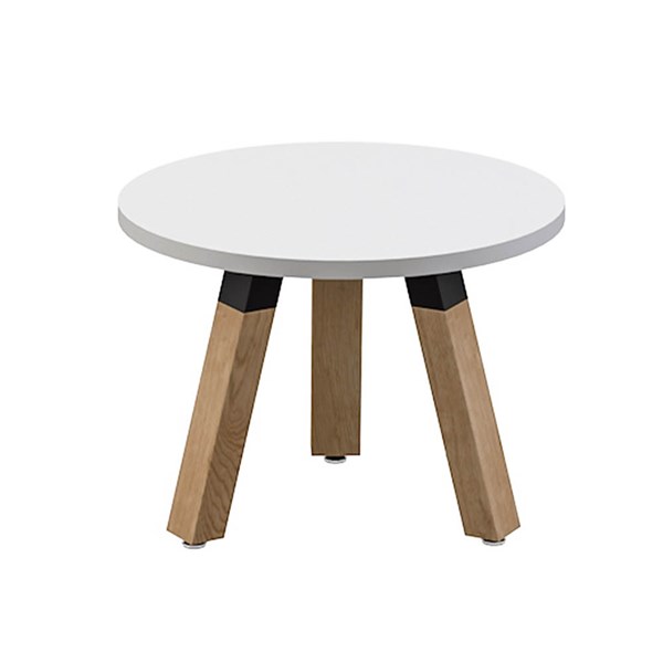 OLG PLANTATION ROUND COFFEE TABLE 3 LEG BLACK HOUSING 600MM WHITE TOP/OAK LEGS