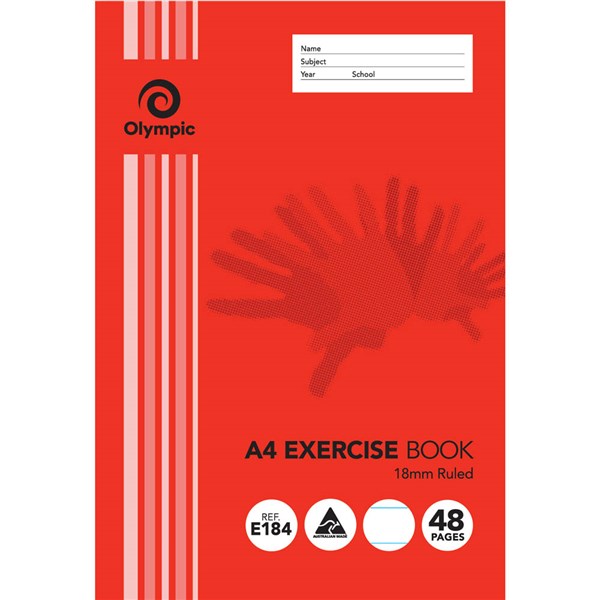 OLYMPIC E184 EXERCISE BOOK 18MM RULED 55GSM 48 PAGE A4