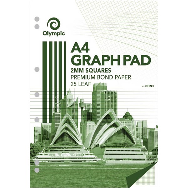 OLYMPIC GH225 GRAPH PAD 2MM SQUARES 70GSM 25 LEAF A4