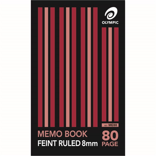 OLYMPIC ME88 MEMO NOTEBOOK 8MM FEINT RULED 80 PAGE 55GSM 165 X 100MM