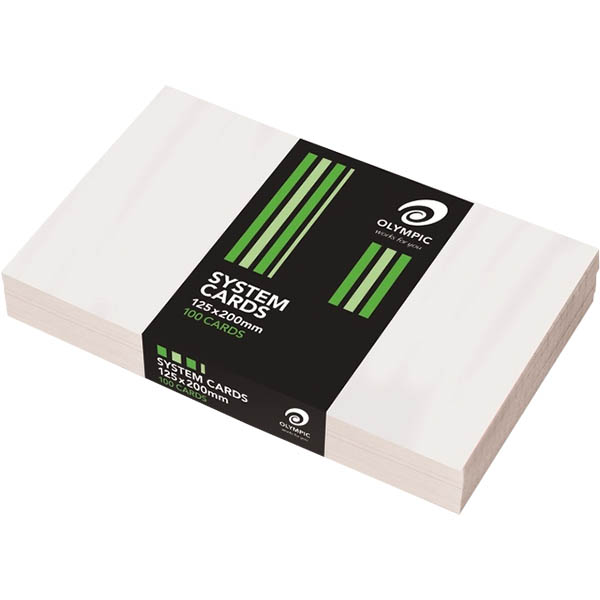 OLYMPIC PLAIN SYSTEM CARDS 125 X 200MM WHITE PACK 100