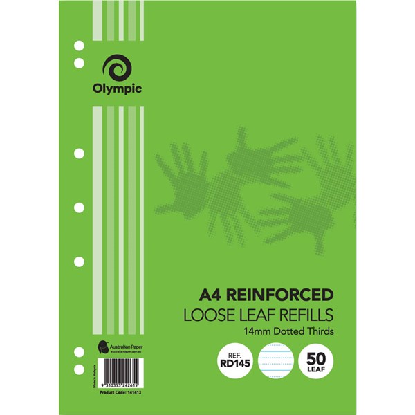 OLYMPIC RD145 REINFORCED A4 LOOSE REFILL 14MM DOTTED THIRDS 55GSM 50 SHEETS