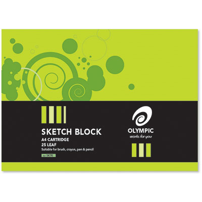 OLYMPIC SKETCH BOOK 25 LEAF 80GSM A4 BLACK PACK 10