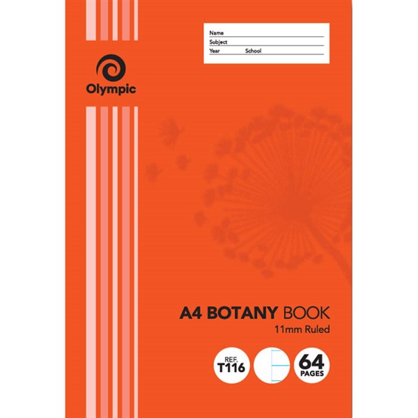OLYMPIC T116 BOTANY BOOK 11MM RULED 55GSM 64 PAGE A4 PACK 20