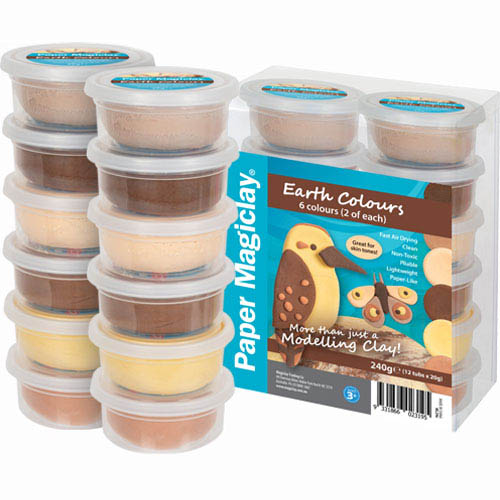 PAPER MAGICLAY MODELLING COMPOUND 240G EARTH COLOURS PACK 12
