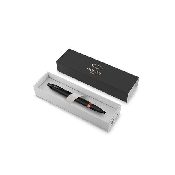 PARKER IM BALLPOINT PEN VIBRANT RINGS SATIN BLACK WITH FLAME ORANGE