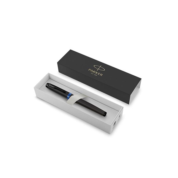 PARKER IM FOUNTAIN PEN VIBRANT RINGS SATIN BLACK WITH MARINE BLUE ACCENTS