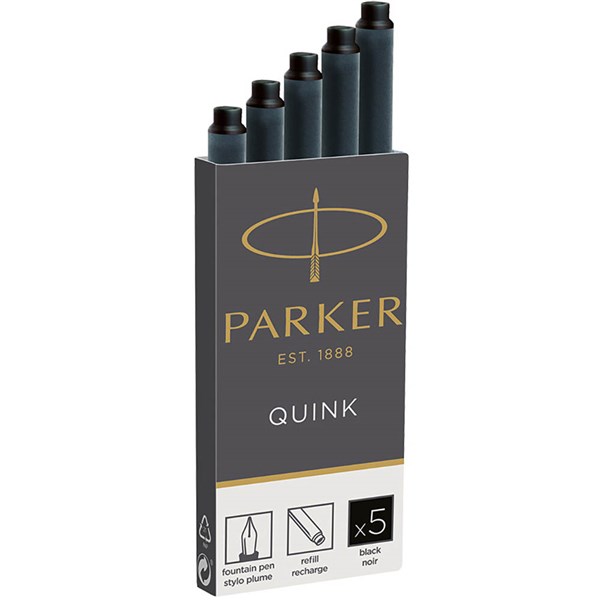 - A pack of five Parker Quink permanent ink cartridges designed to fit all parker fountain pens