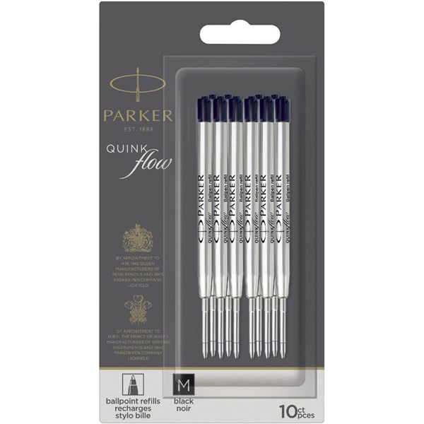 PARKER QUINKFLOW BALLPOINT PEN REFILL MEDIUM BLACK PACK 10