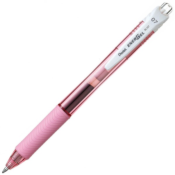 PENTEL BL107 ENERGEL X RETRACTABLE GEL INK PEN 0.7MM PINK BARREL BLACK INK BOX 12