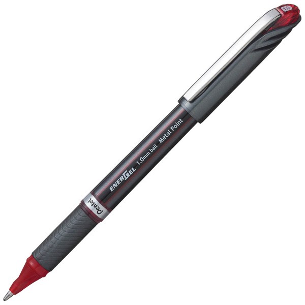 PENTEL BL30 ENERGEL GEL INK PEN 1.0MM BLACK BARREL RED INK BOX 12
