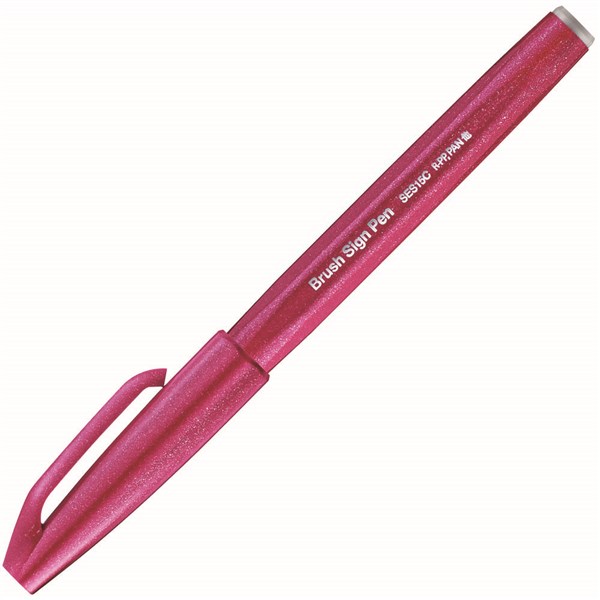 PENTEL SES15C BRUSH SIGN PEN MARKER BURGUNDY BOX 10