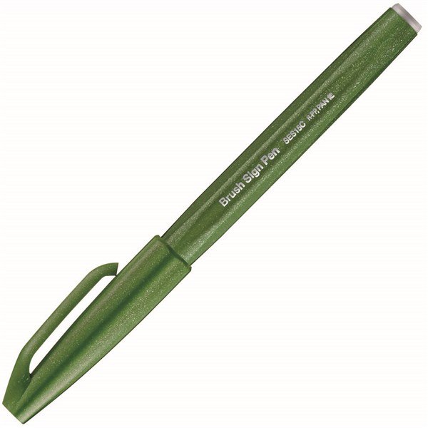 PENTEL SES15C BRUSH SIGN PEN MARKER OLIVE GREEN BOX 10