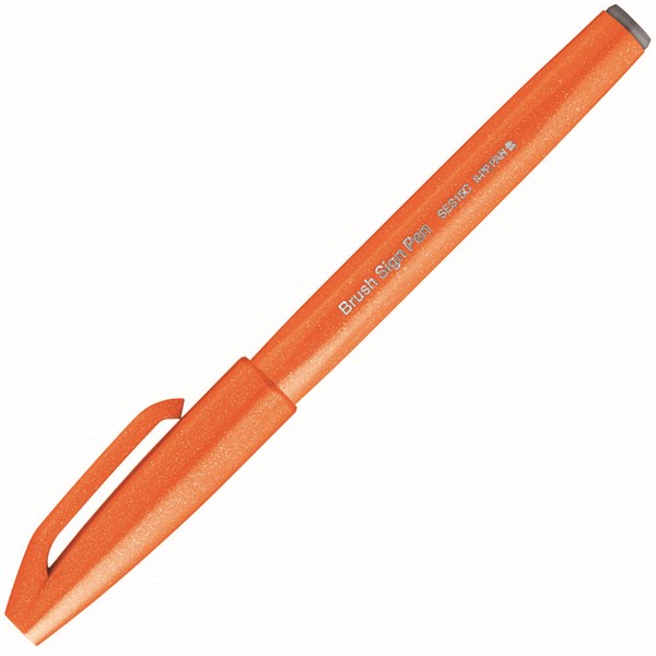 PENTEL SES15C BRUSH SIGN PEN MARKER ORANGE BOX 10