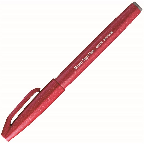 PENTEL SES15C BRUSH SIGN PEN MARKER RED BOX 10