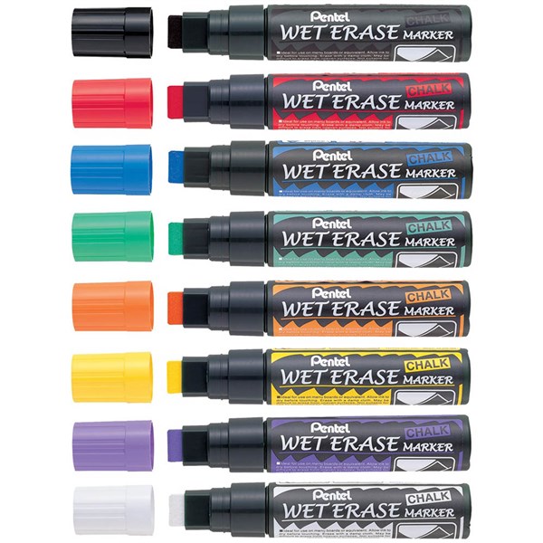 PENTEL SMW56 JUMBO WET ERASE CHALK MARKER CHISEL 10-15MM ASSORTED BOX 12