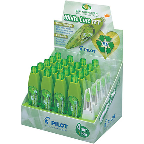 PILOT BEGREEN RETRACTABLE CORRECTION TAPE 4MM X 6M PACK 20 TAPES AND 5 REFILLS