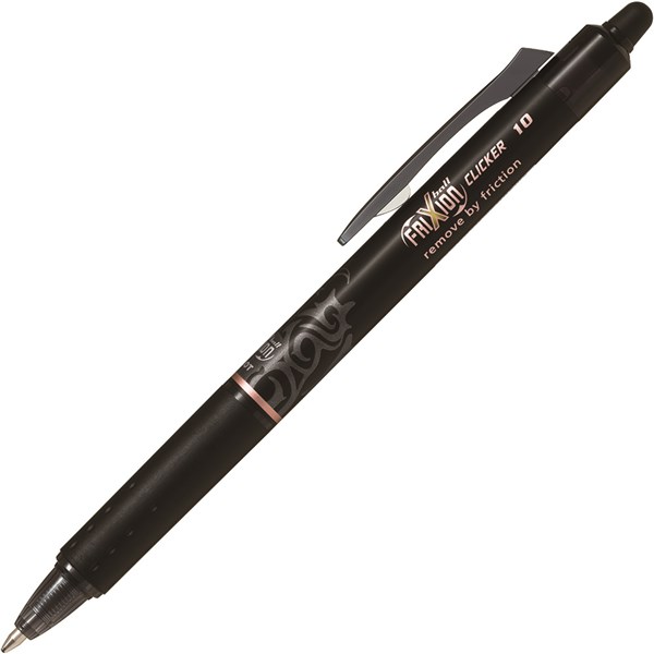 The erasable Frixion Clicker is a unique retractable gel pen that contains thermo sensitive gel ink