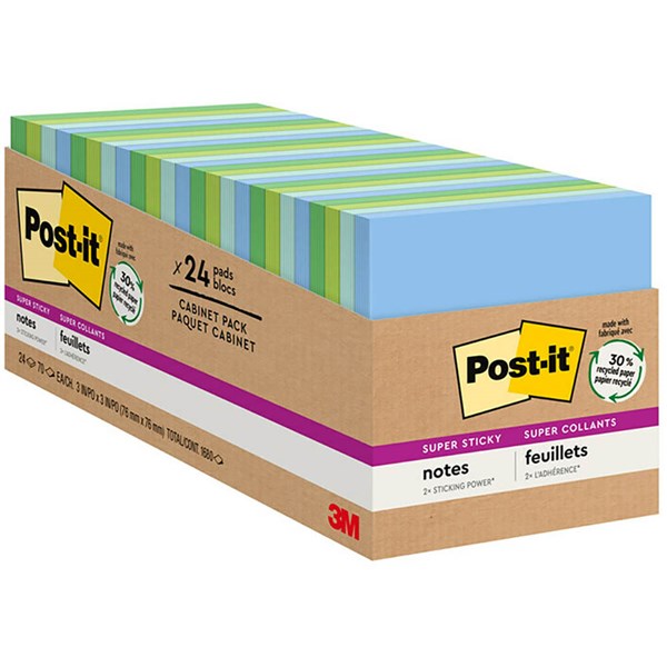 POST-IT 654-24SST-CP SUPER STICKY RECYCLED NOTES 76 X 76MM OASIS CABINET PACK 24