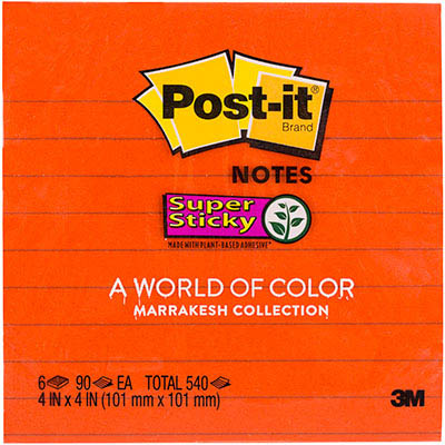 POST-IT 675-6SSAN SUPER STICKY LINED NOTES 98 X 98MM PLAYFUL PRIMARIES PACK 6