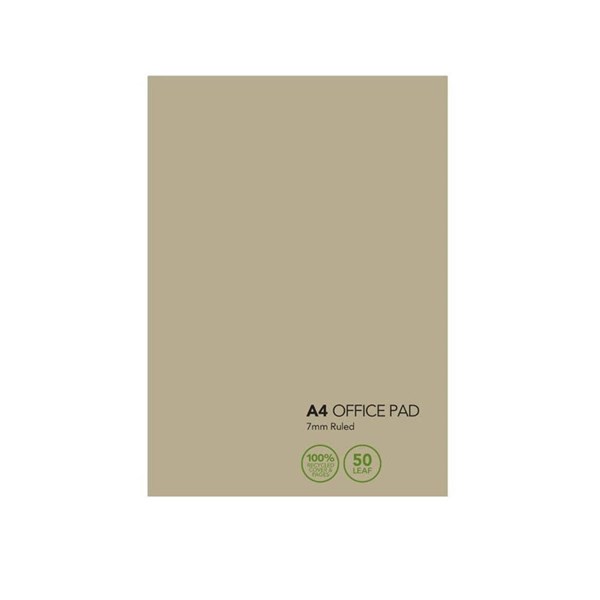 PREMIER RECYCLED OFFICE PAD 7MM RULED 50GSM A4 NATURAL PACK 10