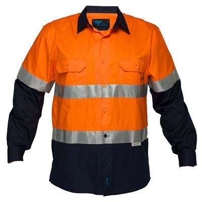 PRIME MOVER MA801 COTTON DRILL SHIRT LONG SLEEVE LIGHTWEIGHT WITH TAPE 2-TONE ORANGE NAVY 2XL