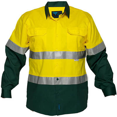 PRIME MOVER MA801 COTTON DRILL SHIRT LONG SLEEVE LIGHTWEIGHT WITH TAPE 2-TONE YELLOW GREEN LARGE