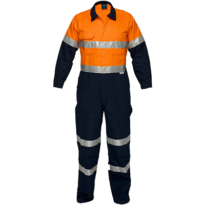 PRIME MOVER MA931 REGULAR WEIGHT COVERALL WITH METAL STUD CLOSURE AND TAPE 2-TONE ORANGE NAVY 112ST