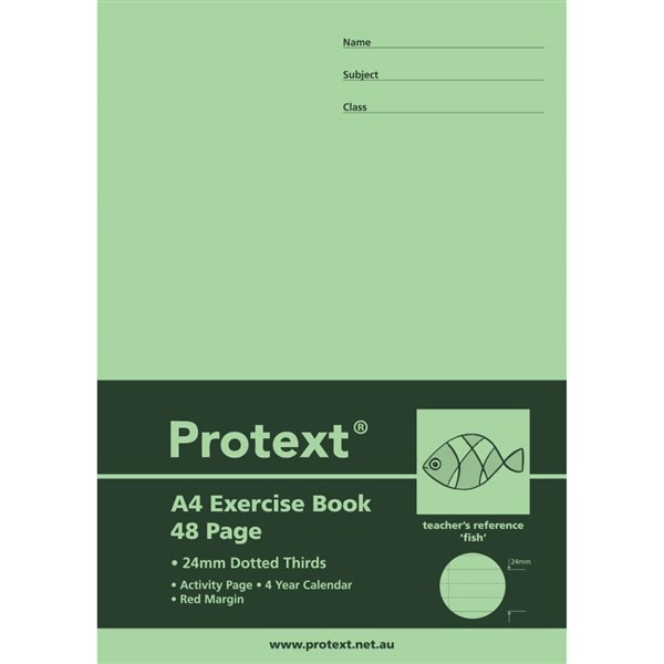 PROTEXT EXERCISE BOOK DOTTED THIRDS 24MM 70GSM 48 PAGE A4 FISH ASSORTED