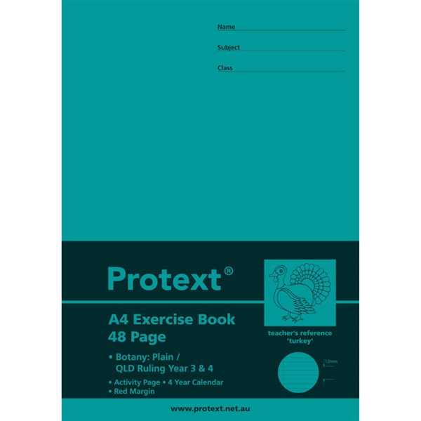 PROTEXT EXERCISE BOOK QLD BOTANY RULED YEAR 3/4 12MM 70GSM 48 PAGE 297 X 210MM TURKEY ASSORTED