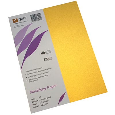 QUILL METALLIQUE PAPER 120GSM A4 AUTUMN GOLD PACK 25