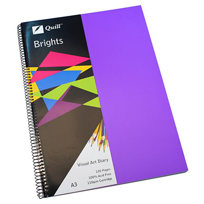 QUILL VISUAL ART DIARY 110GSM 120 PAGE A3 PP DARK PURPLE