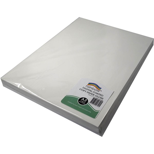 RAINBOW DIGITAL COATED A3 COPY PAPER GLOSS 130GSM WHITE 250 SHEETS
