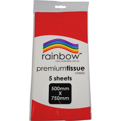 RAINBOW PREMIUM TISSUE PAPER 17GSM 500 X 750MM RED PACK 5