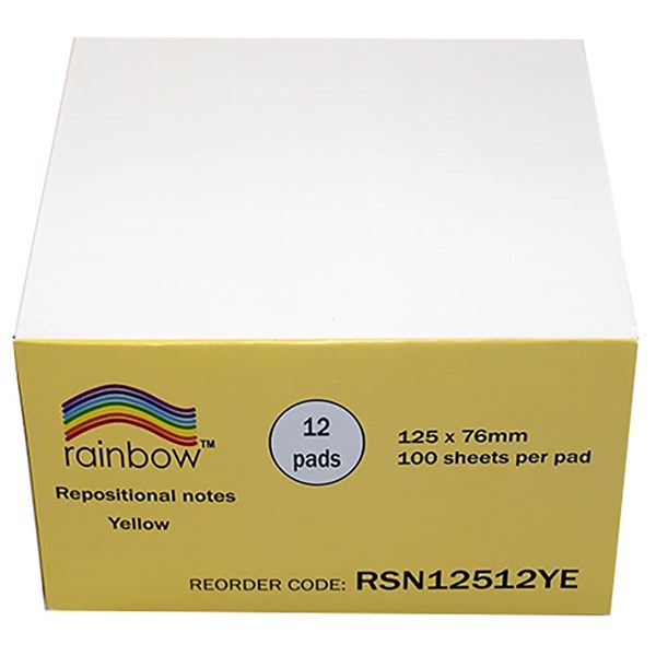 RAINBOW REPOSITIONAL NOTES 125X76MM 100 SHEET PAD YELLOW PACK 12