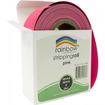 RAINBOW STRIPPING ROLL RIBBED 50MM X 30M PINK