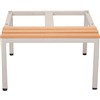 - Single sided bench seat with modified wood slats, silver powdercoated frame and black levelling feet