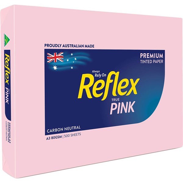 REFLEX COLOURS A3 COPY PAPER 80GSM PINK PACK 500 SHEETS