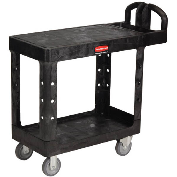 The Rubbermaid Commercial Heavy-Duty Utility Cart with flat shelf is a durable easy to manoeuvre all purpose cart Designed to transport oversized bulk items