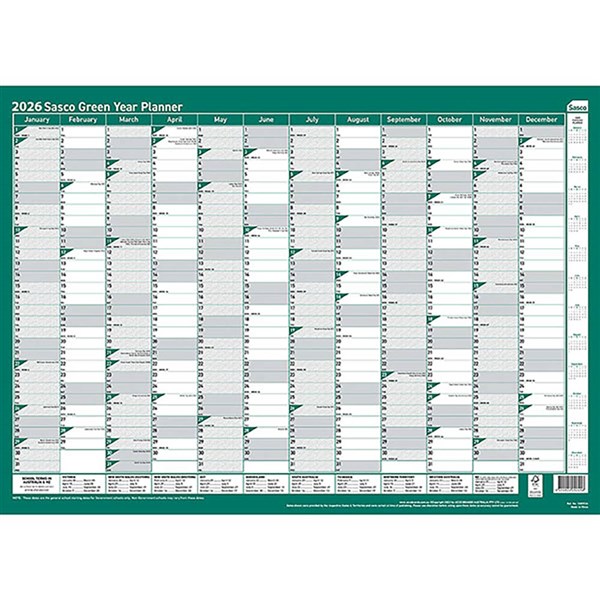 SASCO 10597 GREEN 500 X 700MM YEAR PLANNER