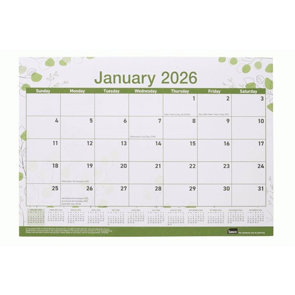 • Dated January to December, Includes Australian & New Zealand Holidays 12 month calendar across the bottom of each month to aid in your planning