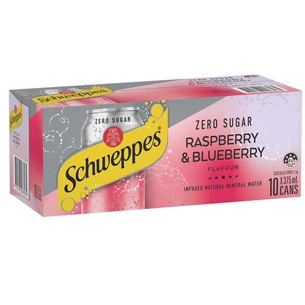 SCHWEPPES INFUSED NATURAL MINERAL WATER CAN 375ML RASPBERRY & BLUEBERRY PACK 10