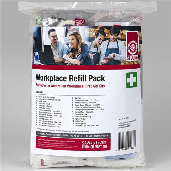The Workplace Refill Pack comprises of a range of comprehensive first aid components